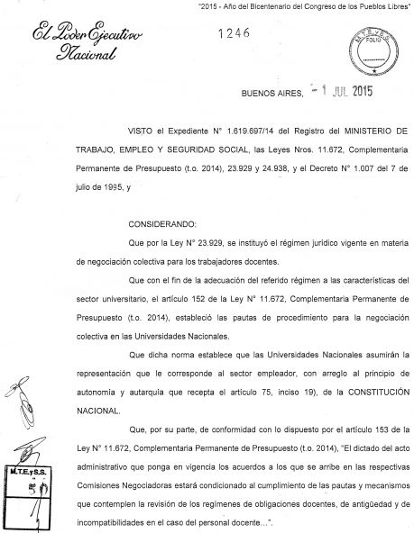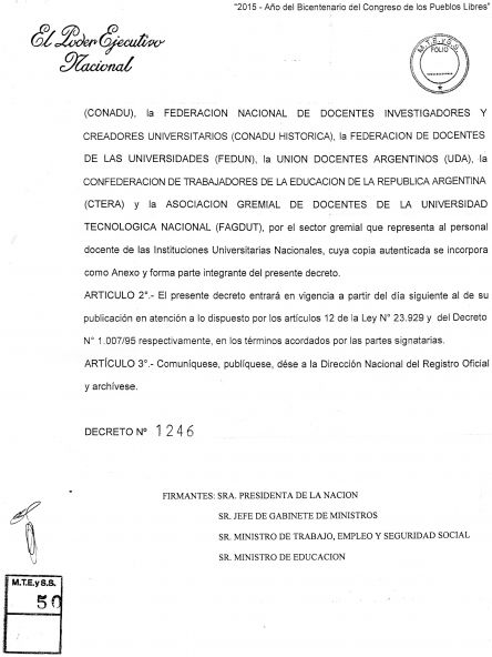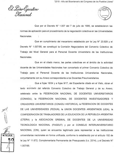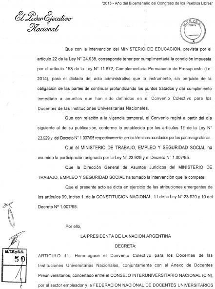 Finalmente hemos logrado la homologación de nuestro primer Convenio Colectivo de Trabajo de la historia para los 150 mil docentes universitarios, siendo éste el primero en firmarse, no sólo en Argentina sino también en América Latina.