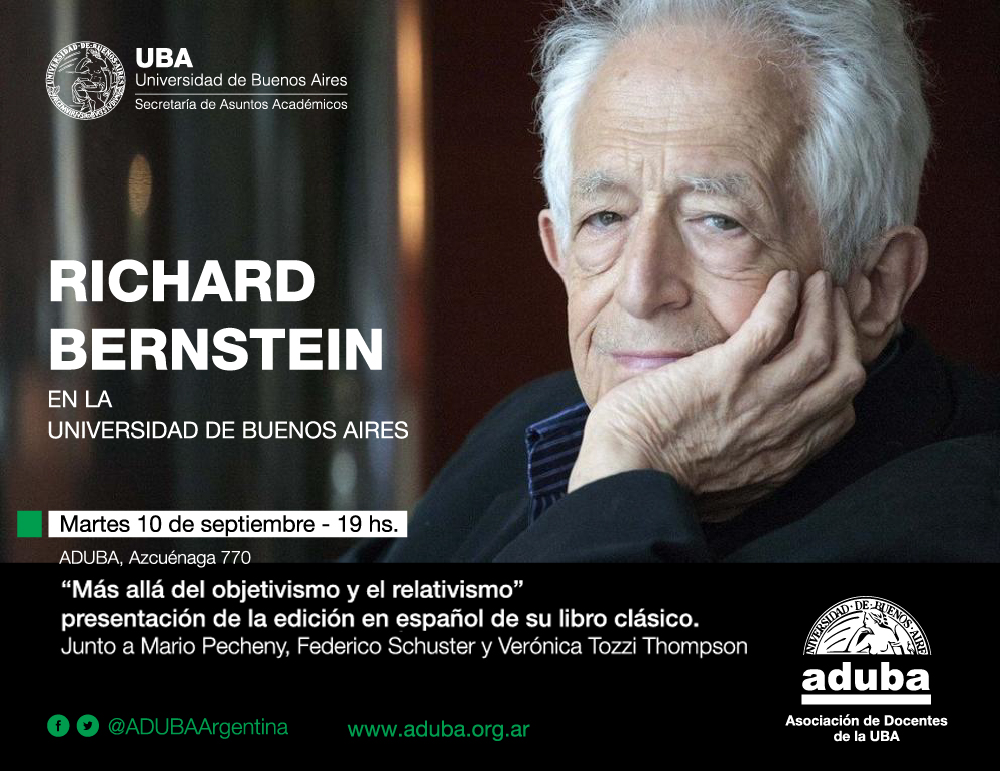 Luego, por la tarde, el profesor Bernstein integrará el panel “La Filosofía como Conversación: A 40 años de La filosofía y el espejo de la naturaleza de Richard Rorty” junto con Samuel Cabanchik, Aurelia Di Berardino, Federico Penelas, Verónica Tozzi Thompson. La actividad tendrá lugar el mismo jueves 12 de septiembre a las 17 horas en la Facultad de Filosofía y Letras de la UBA, Puan 480 aula 108.